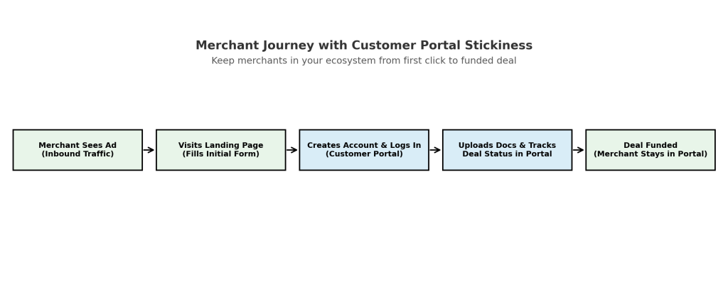 When merchants have to log in to your site to see updates and manage their funding process, they become attached to your platform. This isn’t just good service — it’s strategic. It makes them far less likely to shop around or respond to cold calls from another broker, because their relationship (and their deal data) lives inside your ecosystem.