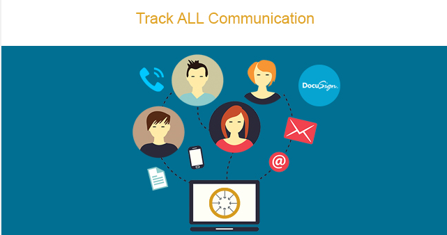 Email, Fax, Call, Text, Docusign - communicate via multiple channels from the same page.
