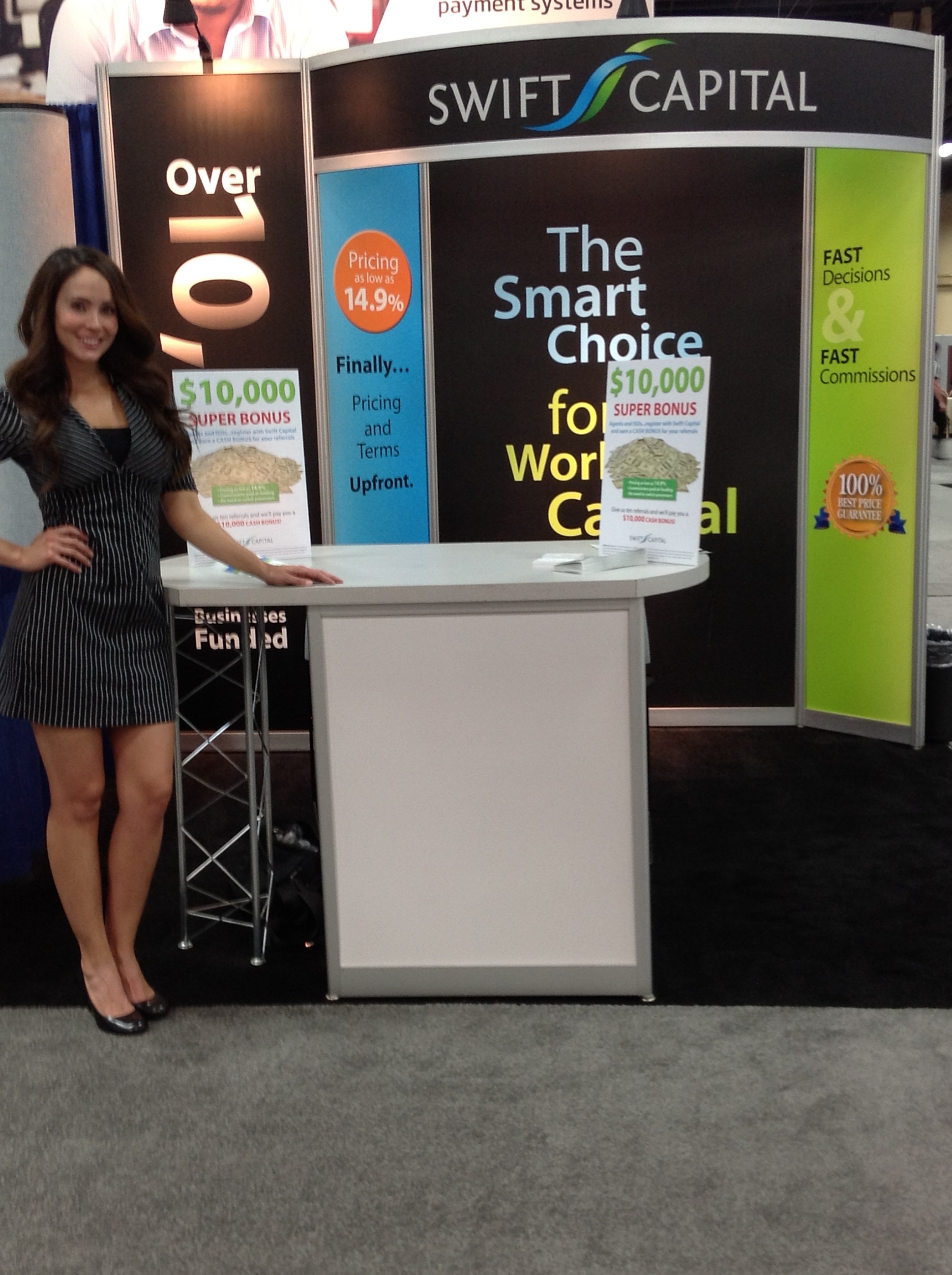 Ooo La La! We’re talking about the orange circle in the back that says ‘Pricing as low as 14.9%’. Swift Capital was in attendance at the ETA expo this year and they have been aggressively marketing on the basis of transparency.