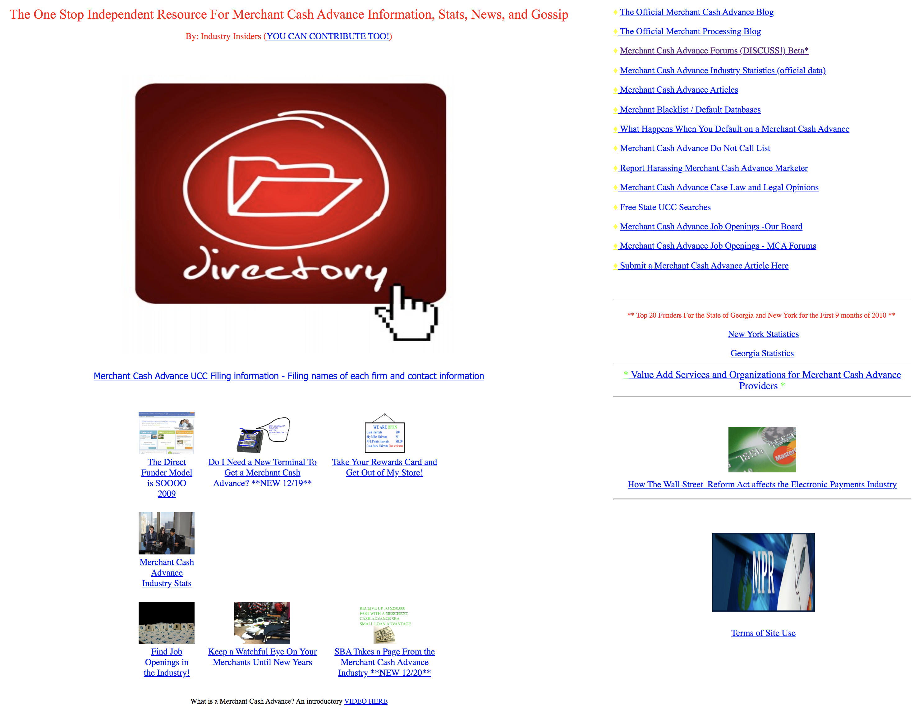 December 26, 2019As we count down the end of the decade, I thought you might want to take a glimpse of how the decade started here at AltFinanceDaily. Below is a snapshot of the main merchant cash info page that was on our site in December 2010!